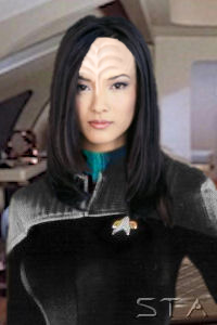 | Physical Description | A tall, rather curvy (Fuller, hourglass) figured Klingon hybrid. Long dark brown hair that is usually partially pinned up. A bit more human-esque than most Klingons, but still very Klingon in appearance. |
